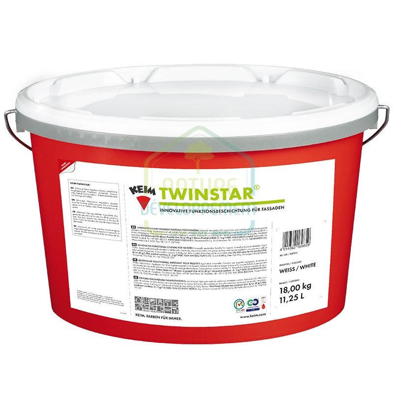KEIM Twinstar est une peinture innovante élaborée à base d’un double liant sol-silicate (silicate de potassium / sol de silice), dont la formulation permet d’obtenir des façades durablement propres avec un haut rendement.