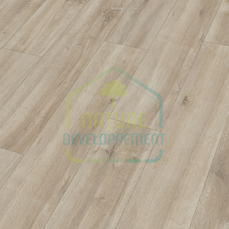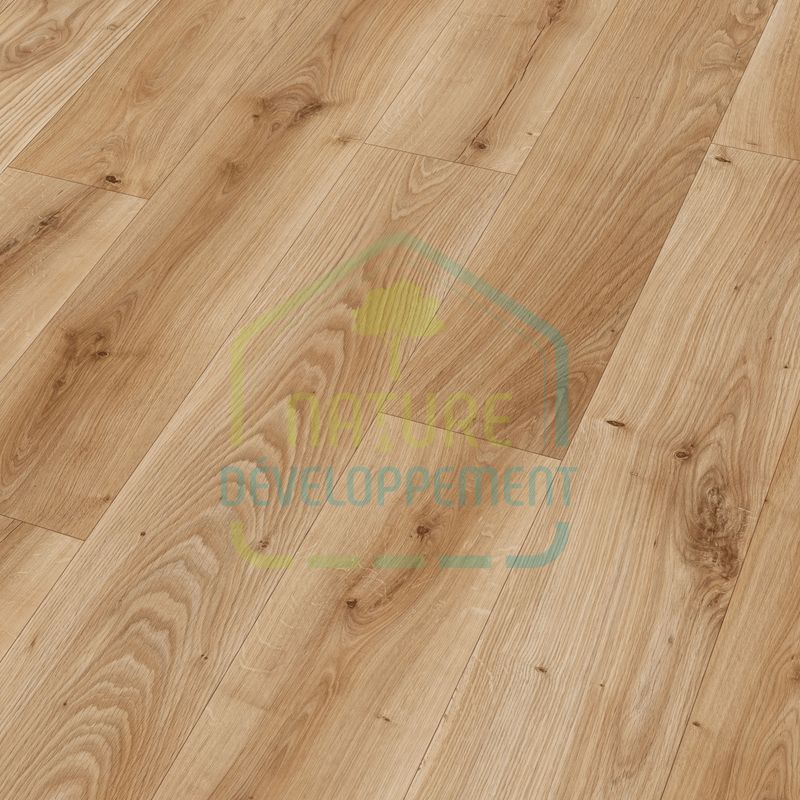 Le sol stratifié peut être facilement posé grâce au système d’assemblage (par clic) et convainc par ses détails optiques raffinés comme un micro-chanfrein périphérique.