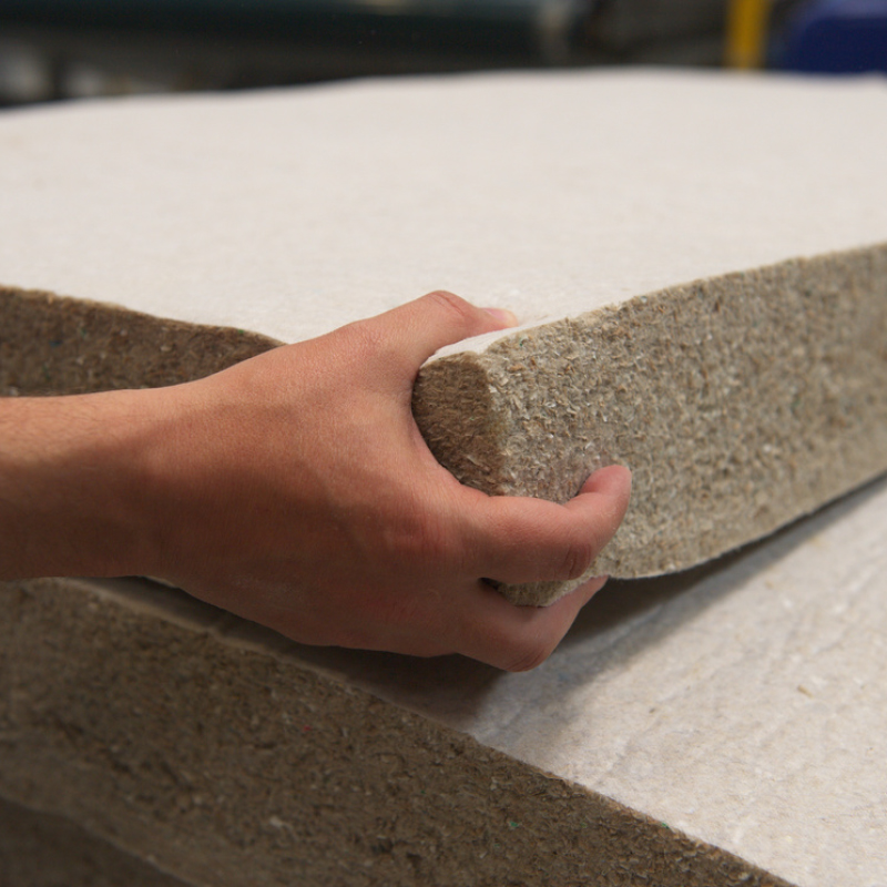 Ces fibres sont ensuite valorisées sous forme de panneaux isolants semi-rigides.