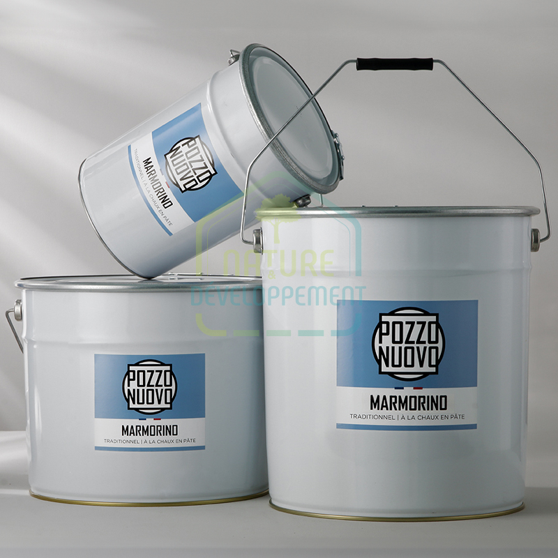 - Composition : Chaux en pâte, poudre de marbre, talc, eau de chaux, huile de lin, cellulose, savon noir.