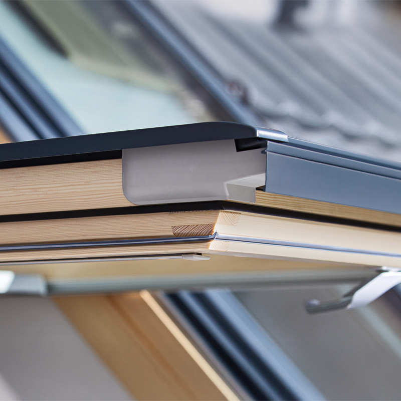 La finition extérieure standard est anthracite RAL 7016. Ainsi, la fenêtre s’intègre facilement à de nombreuses couvertures. Le rendu reste sobre et actuel.