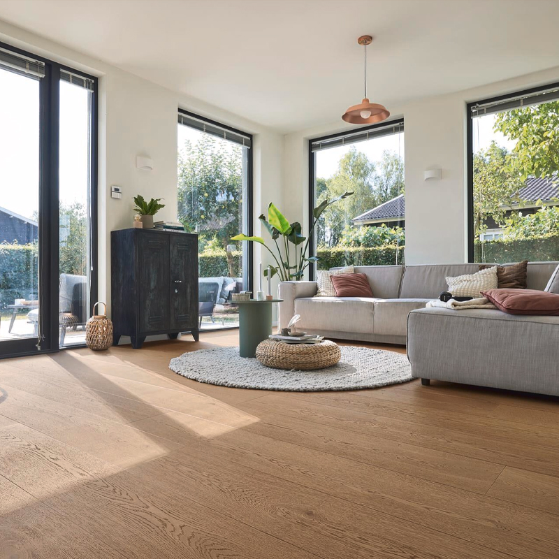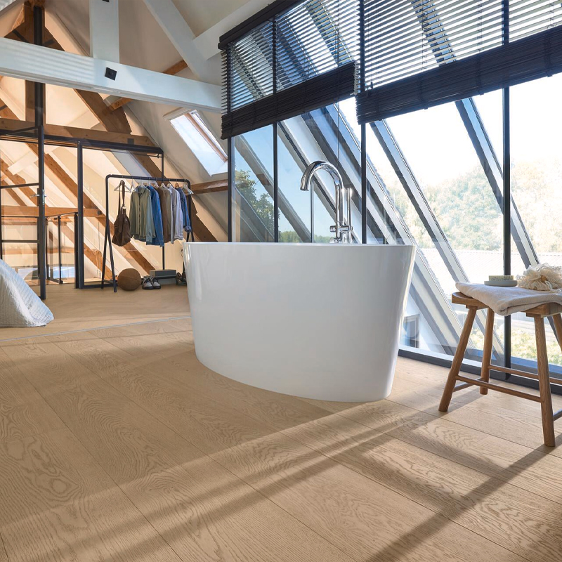 Le sol en bois Lindura sait mettre en valeur toutes les tailles de pièce même les plus généreuses avec ses grands formats