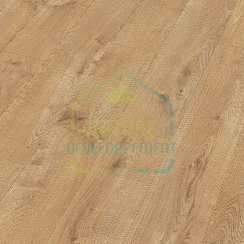 Le sol stratifié peut être facilement posé grâce au système d’assemblage (par clic) et convainc par ses détails optiques raffinés comme un micro-chanfrein périphérique.