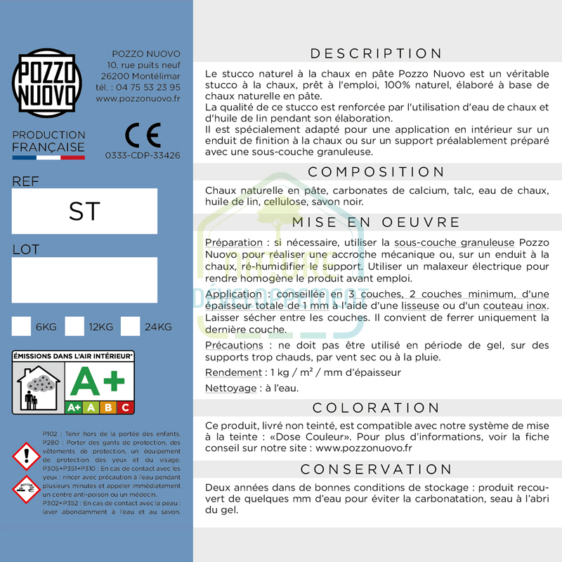 Le stuc naturel à la chaux en pâte Pozzo Nuovo est un véritable stuc à la chaux, prêt à l’emploi, 100% naturel élaboré à base de chaux naturelle en pâte.