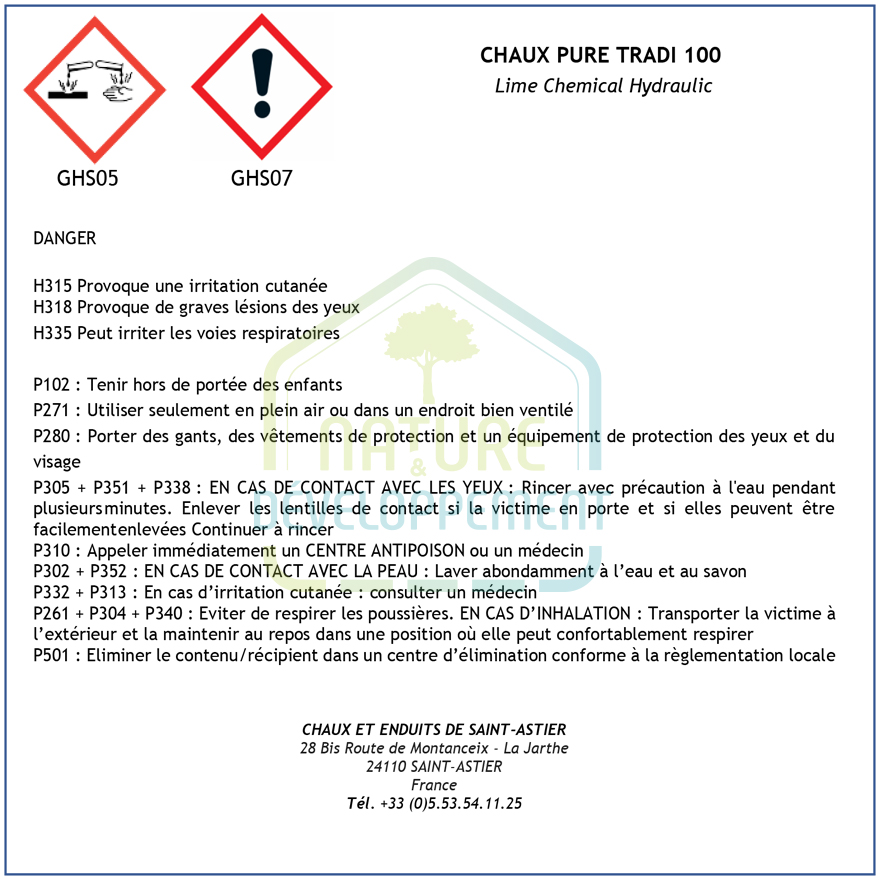 Chaux NHL5 TRADI 100 25KG Saint-Astier | Résistance et Polyvalence pour vos Projets