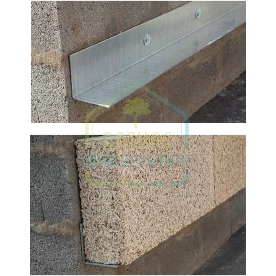 L’utilisation des cornières est conseillée pour poser le premier rang de blocs de chanvre dans certaines applications.