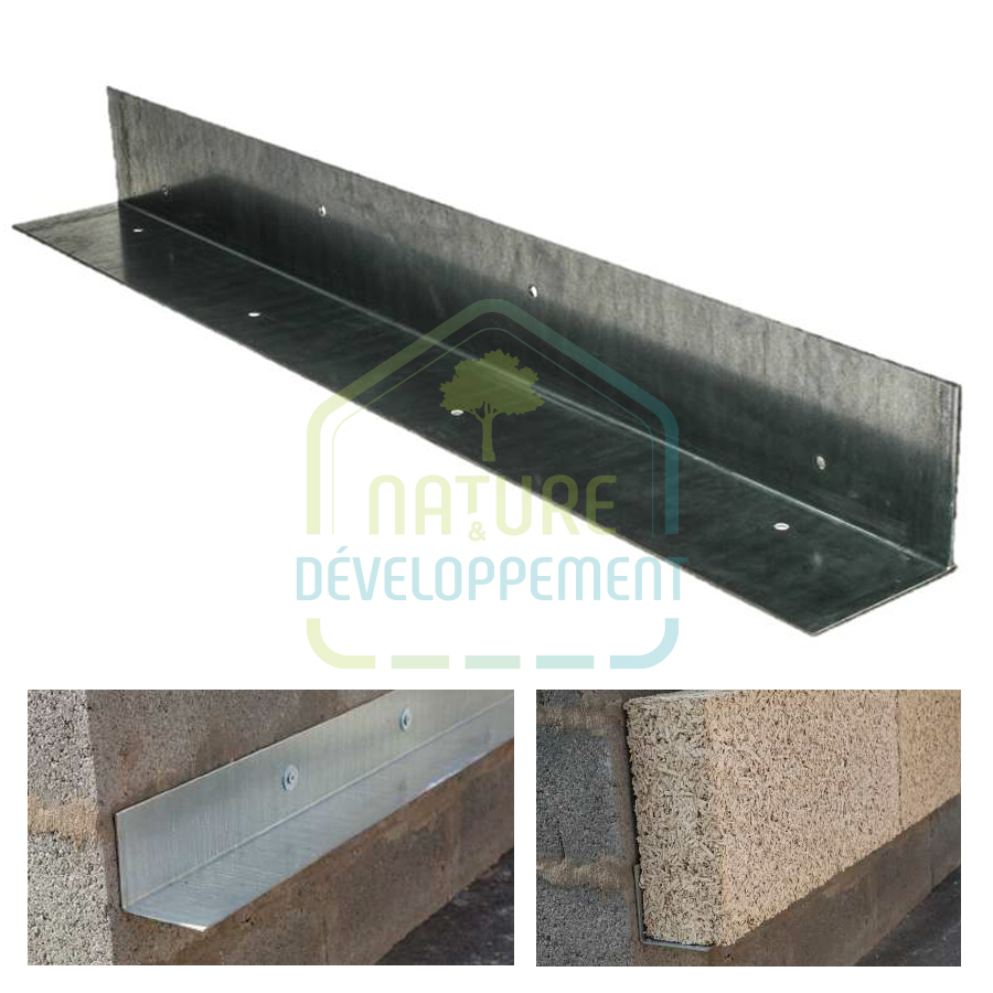Il est impératif d’utiliser la cornière adaptée à l’épaisseur du bloc de chanvre et d’utiliser des vis de diamètre 8mm au minimum pour la fixation de la cornière dans le support.