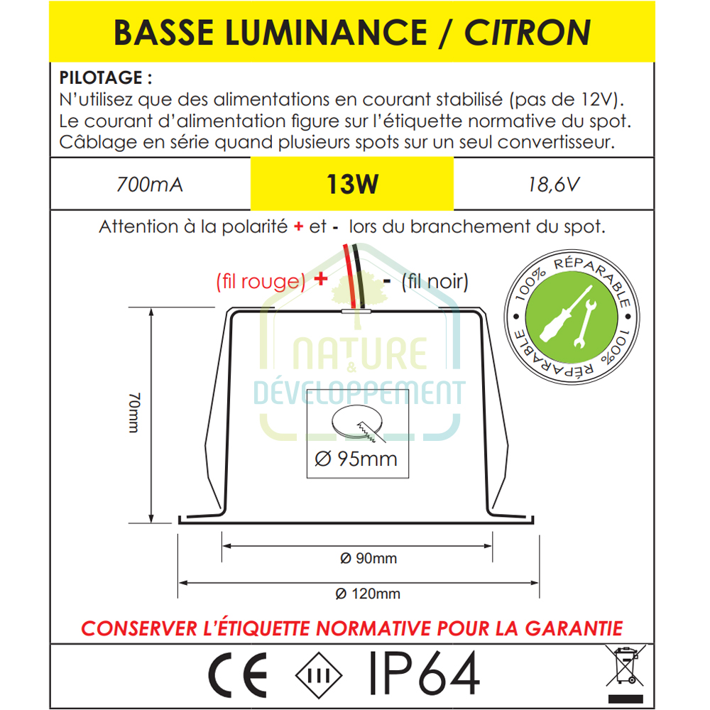 L’encastré CITRON se pilote avec un convertisseur CC 700mA.
