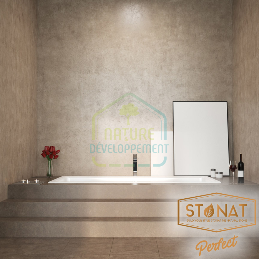 Le Stonat Perfect peut se rapprocher d’un effet béton ciré ou tadelakt.