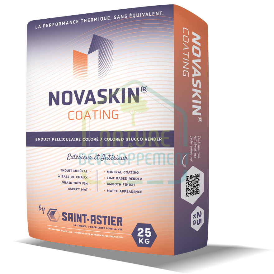 - NOVASKIN Coating pour un enduit de finition à la chaux, sur support minéral, de 1mm à 3mm d’épaisseur en pose manuelle. (nous consulter)