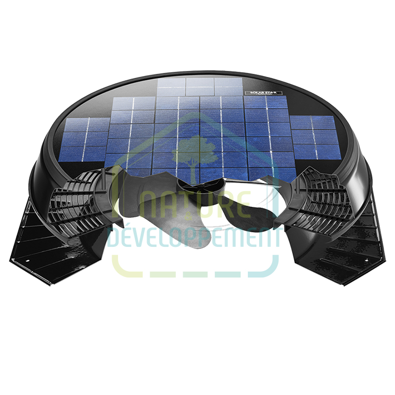 - L’extracteur Solar Star® est autonome, alimenté par un panneau solaire de 16W ou 35W avec la possibilité d’ajouter un panneau solaire supplémentaire pour optimiser son fonctionnement toute la journée.