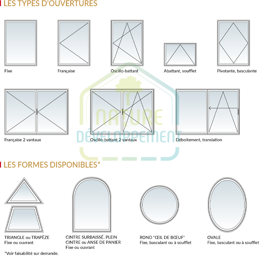 | Type d'ouverture | Fenêtres, Chassis fixe |