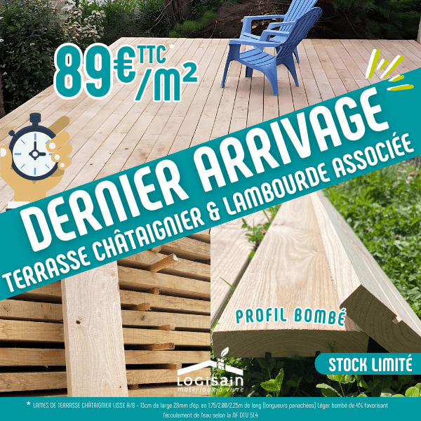 Ainsi, le châtaignier est une essence de bois français reconnue pour sa durabilité naturelle. Il convient très bien à la réalisation d’une terrasse bois, sans surcharge visuelle et avec un rendu authentique.