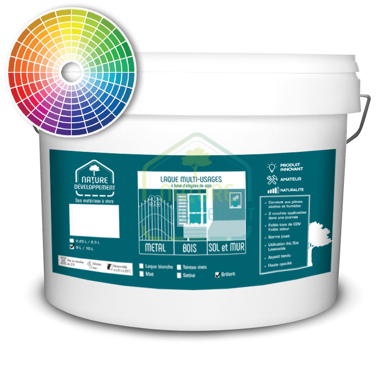 Peinture laque brillante teintée pour bois, murs, sols et métal de Nature & Développement