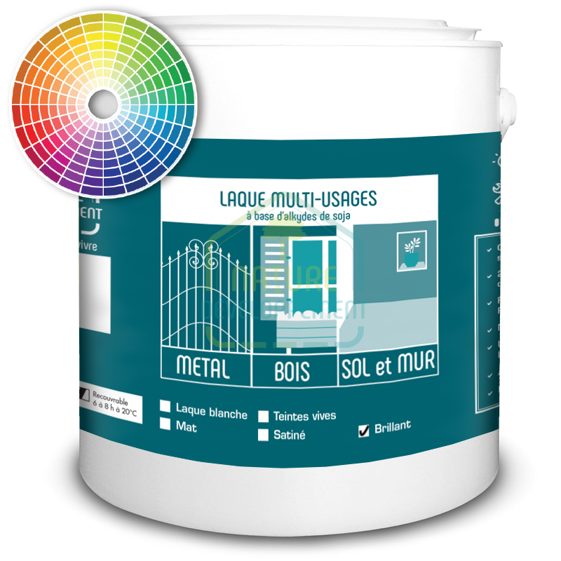 Peinture laque brillante teintée pour bois, murs, sols et métal – Nature & Développement