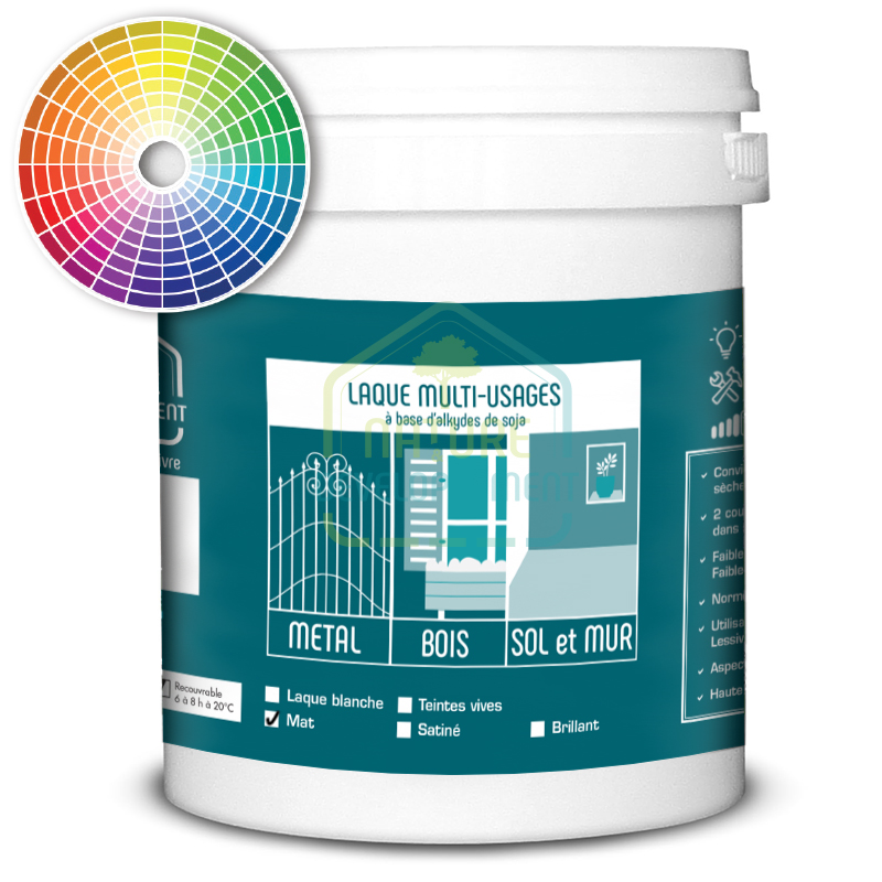 Peinture laque mat teintée écologique pour bois, murs, sols et métal – Nature & Développement