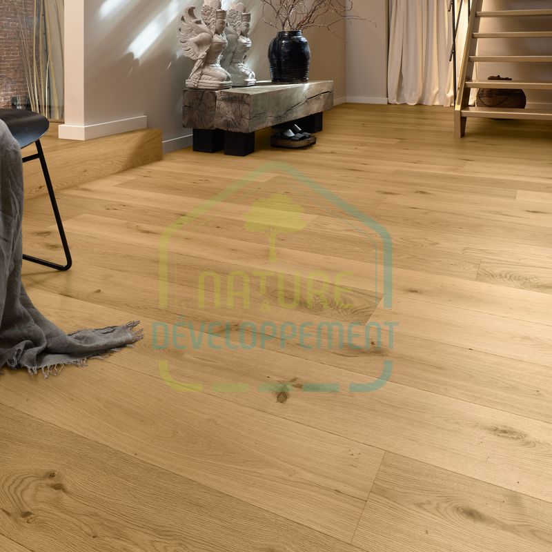 De plus, cette finition rend le parquet facile à entretenir, résistant aux taches et aux micro-rayures.