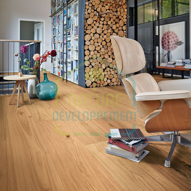 Ce parquet convient parfaitement à toutes les pièces d’habitation, qu’il s’agisse de séjours, de chambres ou de locaux commerciaux à usage modéré.