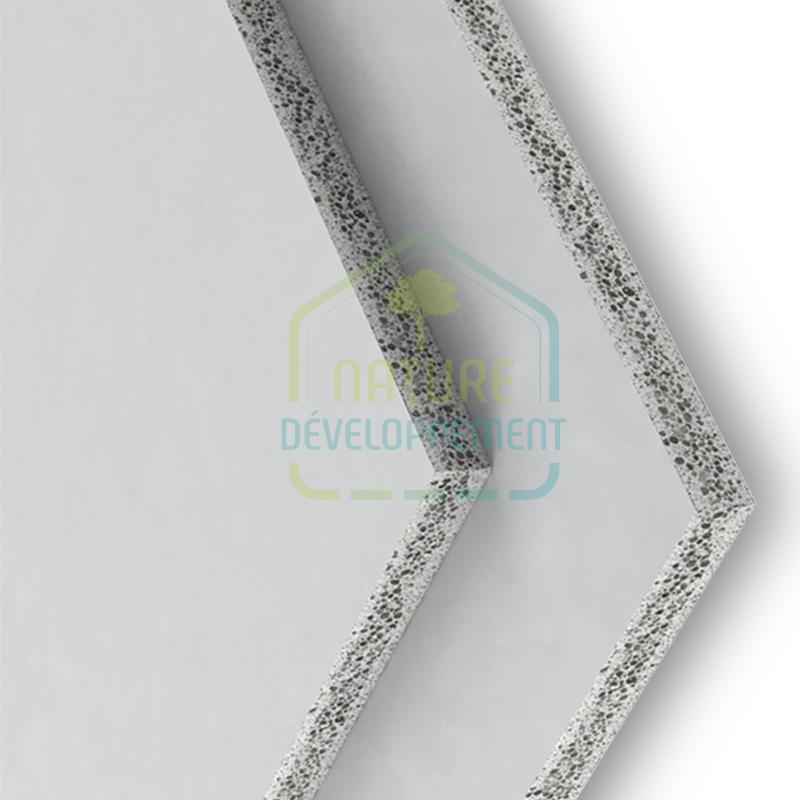 | Composition | Âme ciment avec billes légères, treillis fibre de verre sur les deux faces |