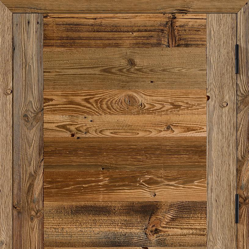 - Parement : vieux bois massif, épaisseur 9 mm