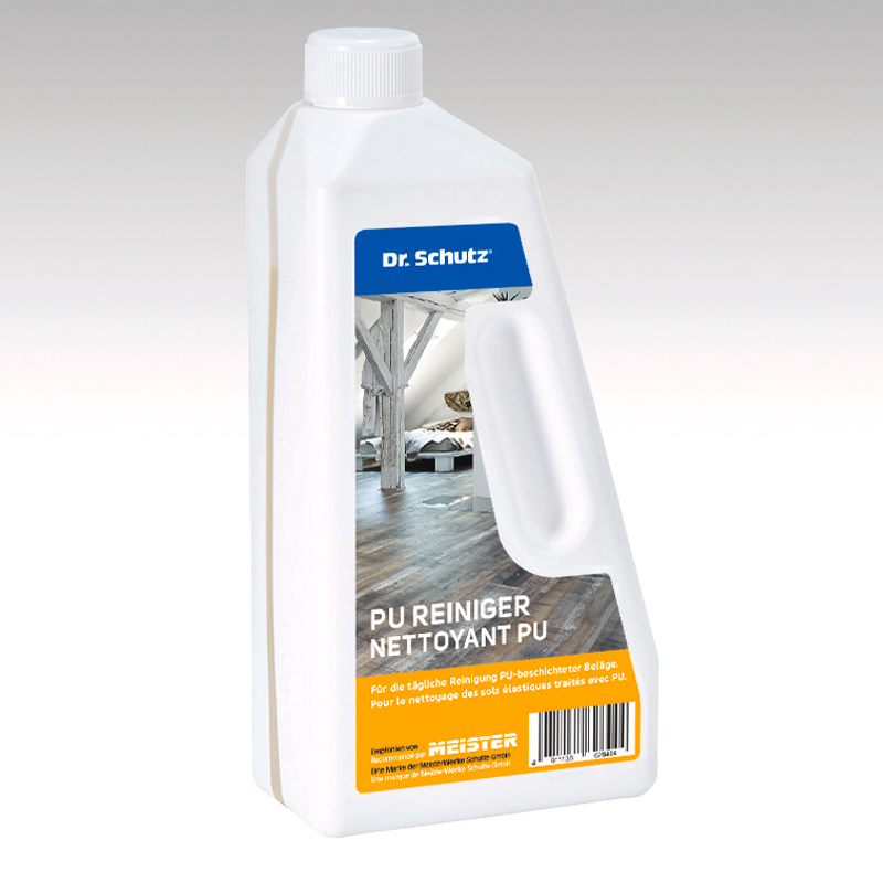 - Nettoyant PU : conçu pour nettoyer après pose et enlever les salissures importantes.