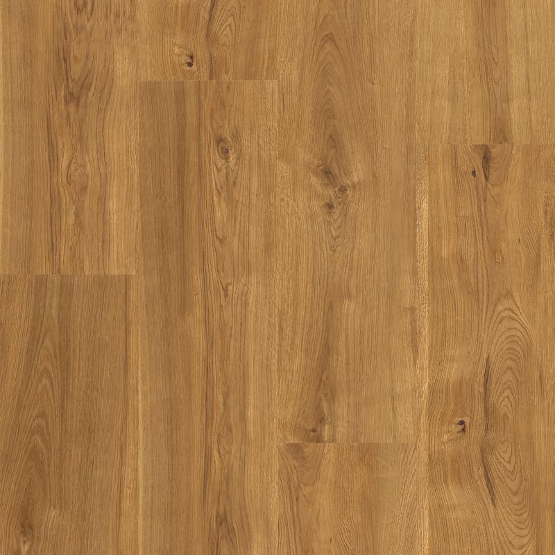 Son décor bois imprimé en haute définition offre un rendu homogène, tandis que la structure en liège massif assure confort et absorption des bruits de pas.