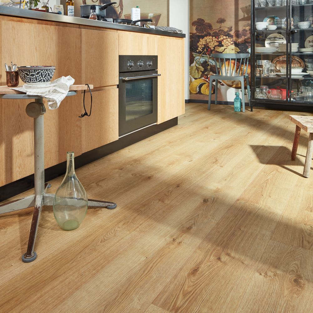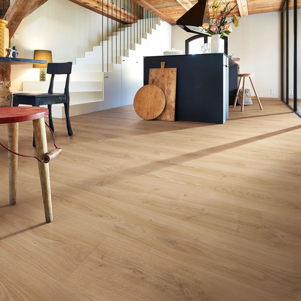 Sol stratifie grande lame, résistant à l’eau 24h, décor chêne Meister LL 250