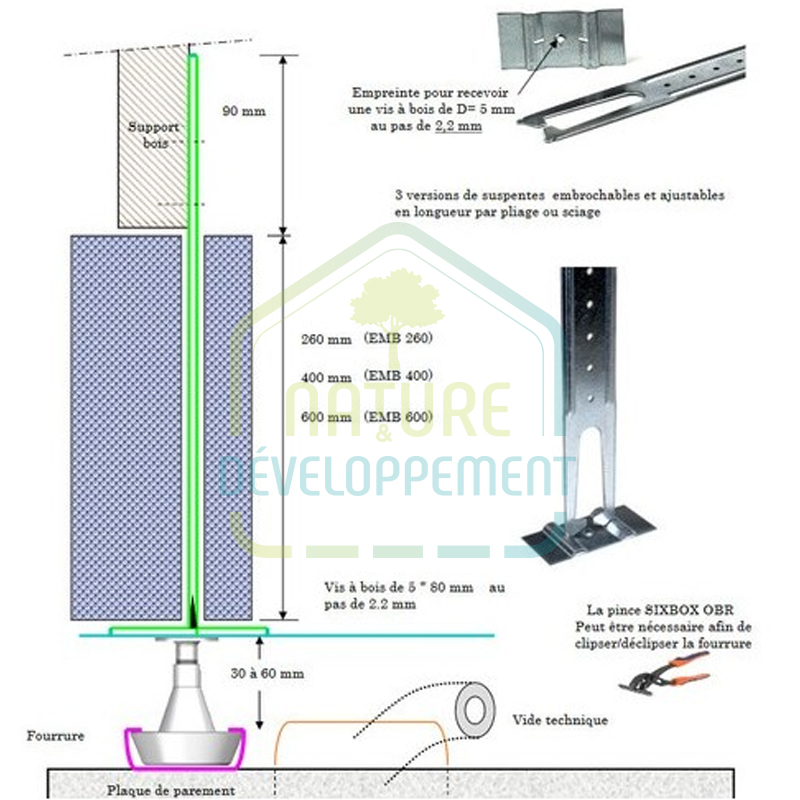 Ils peuvent être associés à des entretoises pour augmenter votre vide technique ou pour faire face à une contrainte technique.