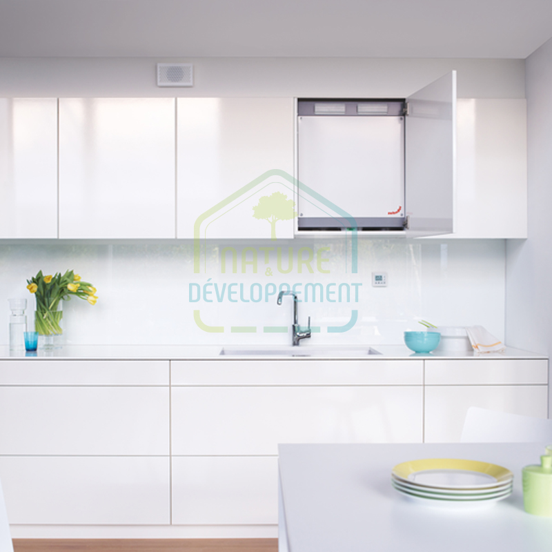 Il optimise l’espace de l’appartement en s’intégrant facilement dans un placard de cuisine, d’entrée, de WC ou de salle de bains.