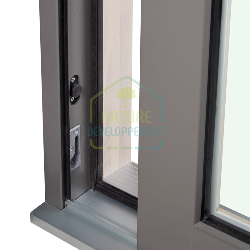Résistance accrue à l’usure (haute résistance au passage fréquent) grâce au seuil capoté Aluminium, un ferrage haut de gamme ROTO