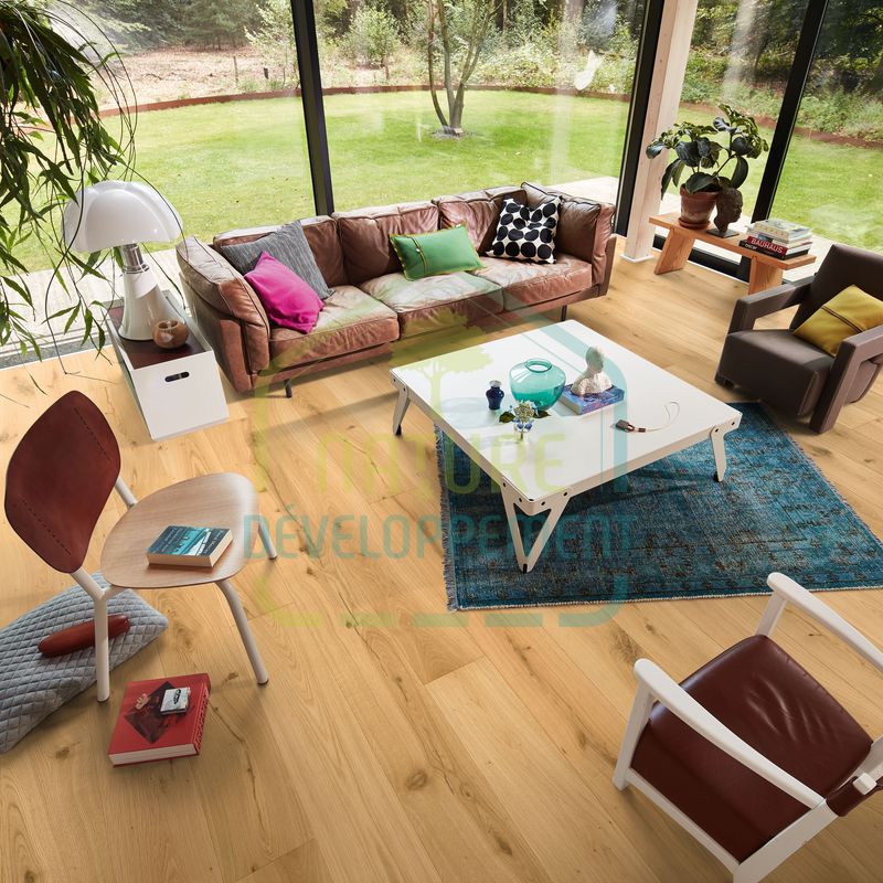De plus, cette finition rend le parquet facile à entretenir, résistant aux taches et aux micro-rayures.