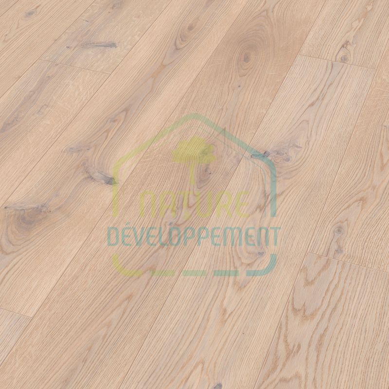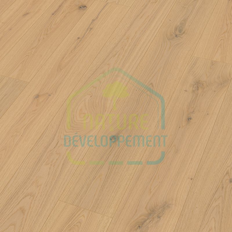 Avec une épaisseur totale de 13 mm et une couche d’usure en bois noble d’environ 2,5 mm, ce parquet offre une stabilité et une longévité exceptionnelles.