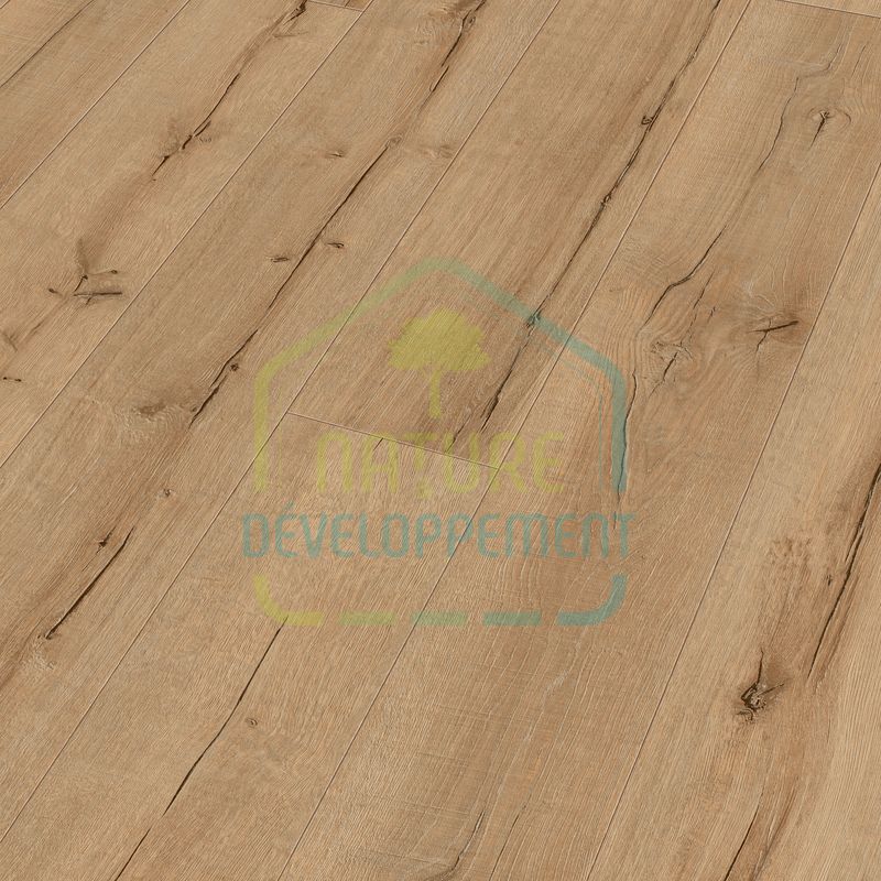 Le sol stratifié est résistant à l‘eau (4 heures de protection en cas d’eau stagnante) puisqu’il offre la protection complète contre l’humidité du système AquaSafe.