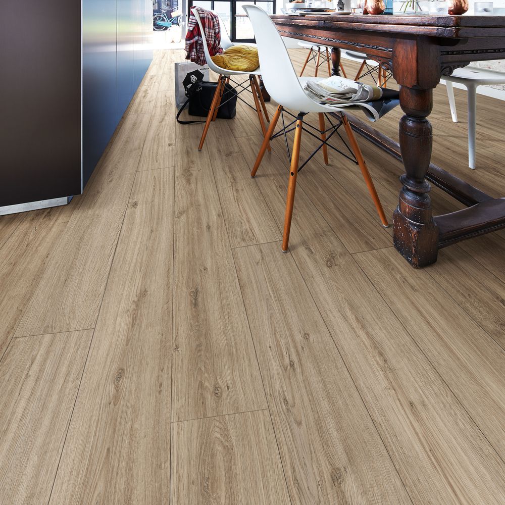 Avec son épaisseur de 8 mm et la classe d’utilisation 23 – 32, il est approprié pour les espaces d’habitation très utilisés, comme les salles de bains, ou les surfaces commerciales comme les boutiques et les restaurants.