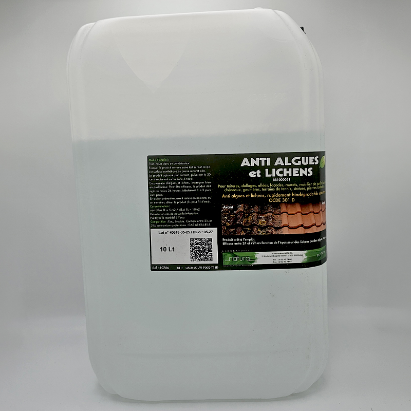 Le traitement anti-algues et anti-lichens biodégradable Natura est une solution prête à l’emploi, efficace et sans danger pour les matériaux. Il permet de supprimer durablement les algues, lichens et autres dépôts végétaux présents sur vos surfaces extérieures, sans altérer leur aspect.