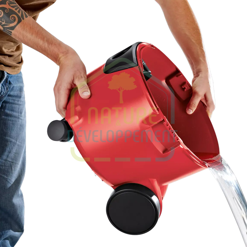 Avec ses grandes roues et ses deux roulettes directionnelles orientables, cet aspirateur est facile à manœuvrer, même sur des terrains accidentés.