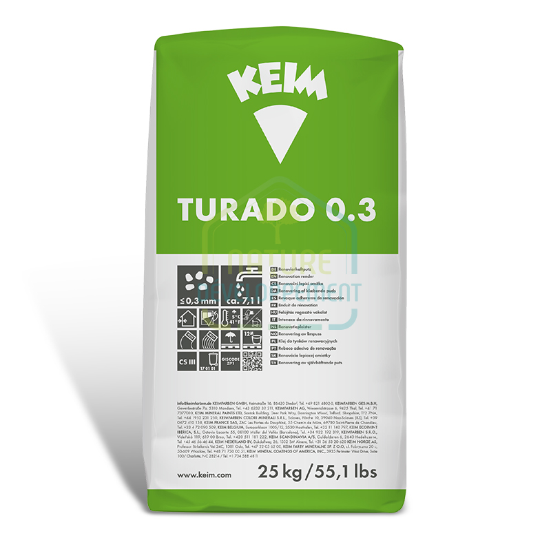 Enduit chaux et fibre pour rénovation, ratissage, finition KEIM Turado