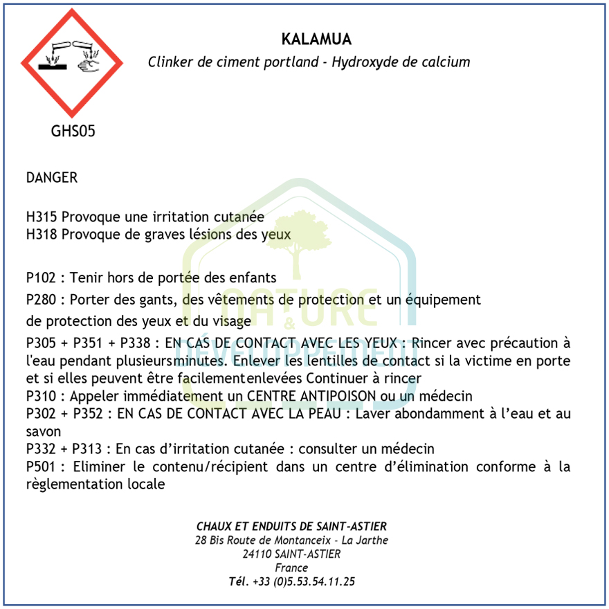 | Matière | Chaux hydraulique, Minérale |