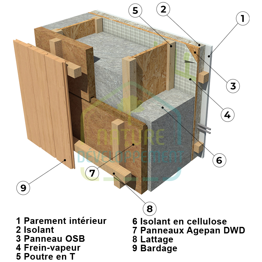 - Paroi de mur ossature bois