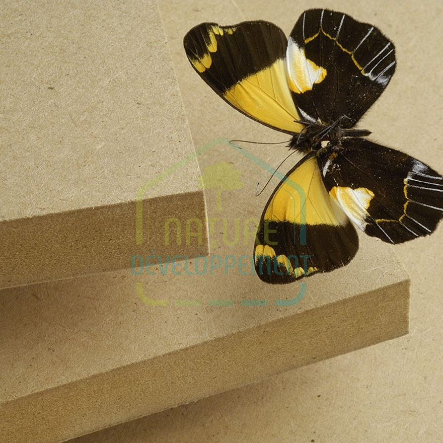 Agepan DWD le panneau de fibres de bois est obtenu par un procédé à sec, avec adjonction d’un faible taux de liant exempt de formaldéhyde.