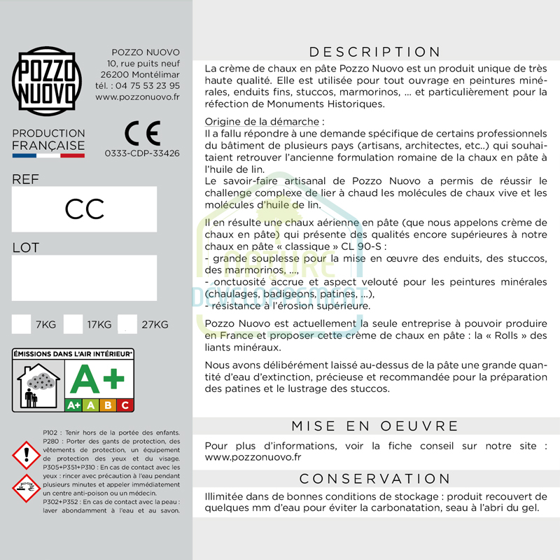 Pozzo Nuovo est actuellement la seule entreprise à pouvoir produire en France et proposer cette Crème de chaux en pâte : la « Rolls » des liants minéraux.