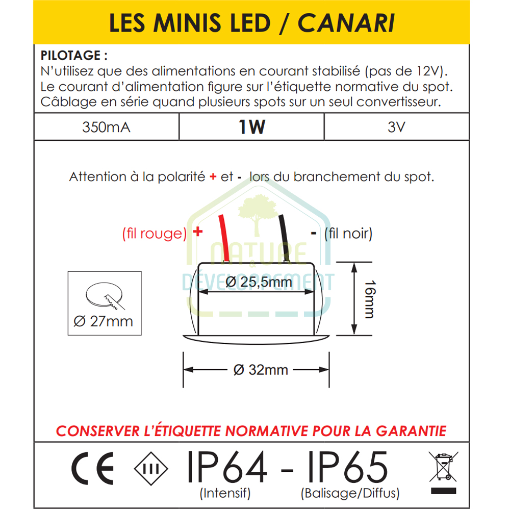 Il se pilote en courant continu 350mA en série. Alimentation à sélectionner en fonction du nombre de spots à implanter.