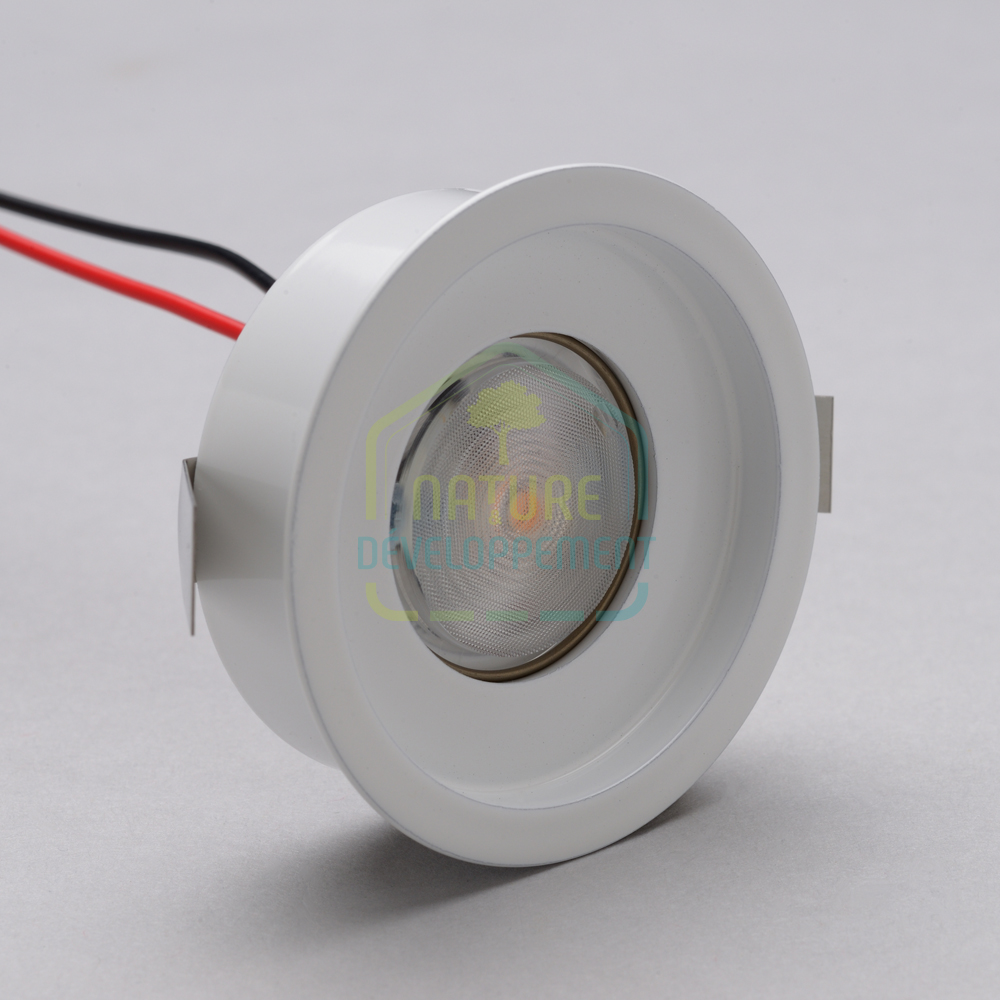 Notez que son Ø d’encastrement de 52mm correspond au perçage de certains anciens spots halogènes extra-plats intégrés dans des meubles de salle de bain.