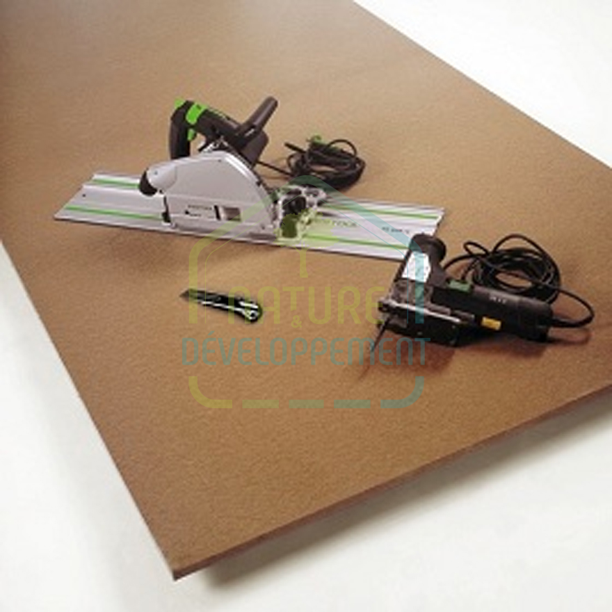 - Conformité aux normes : Produit certifié NF EN 13986 et EN 622-4 SB – E1, avec une réaction au feu classée E selon EN 13501-1.