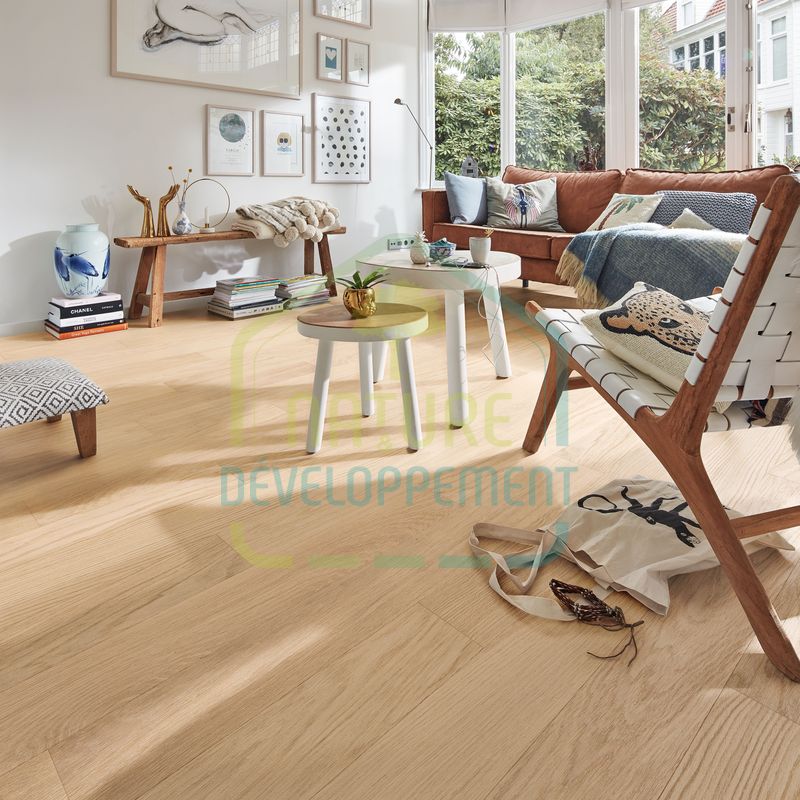 De plus, ce parquet est adapté à toutes les pièces d’habitation telles que les séjours, les chambres et les locaux commerciaux à usage modéré.