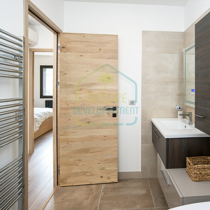 Avec des paumelles invisibles, des serrures magnétiques ou à clef, des poignées (25 modèles différentes), ces huisseries, que ce soit en porte battante, coulissante ou pour des placards, sont personnalisables à l’infini…