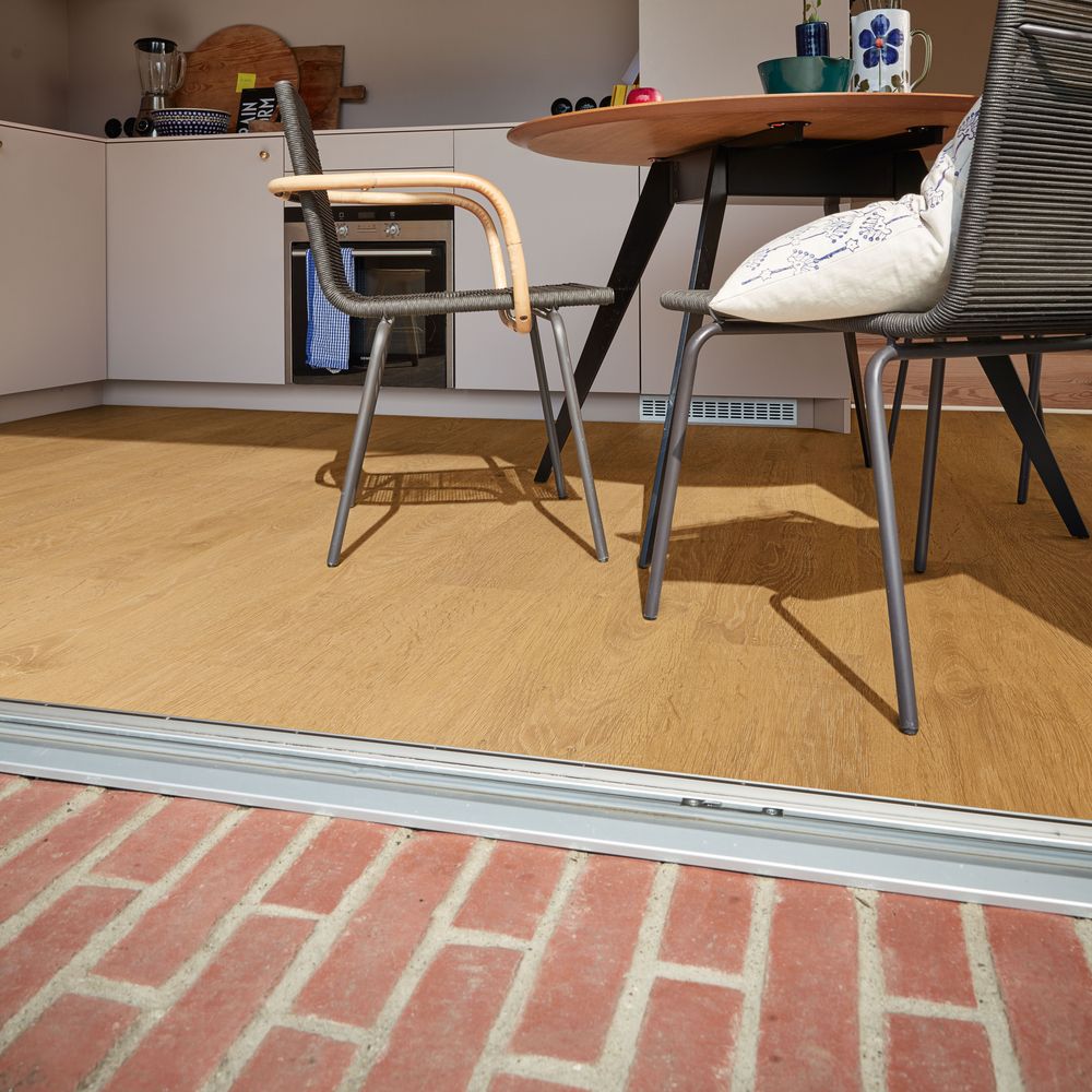 Peut être posé dans des pièces humides tels que p.ex. salles de bains. Les espaces extérieurs et pièces humides telles que saunas, cabines de douche, bains de vapeur et pièces avec écoulement au sol ne sont pas adaptés à la pose de ce sol.