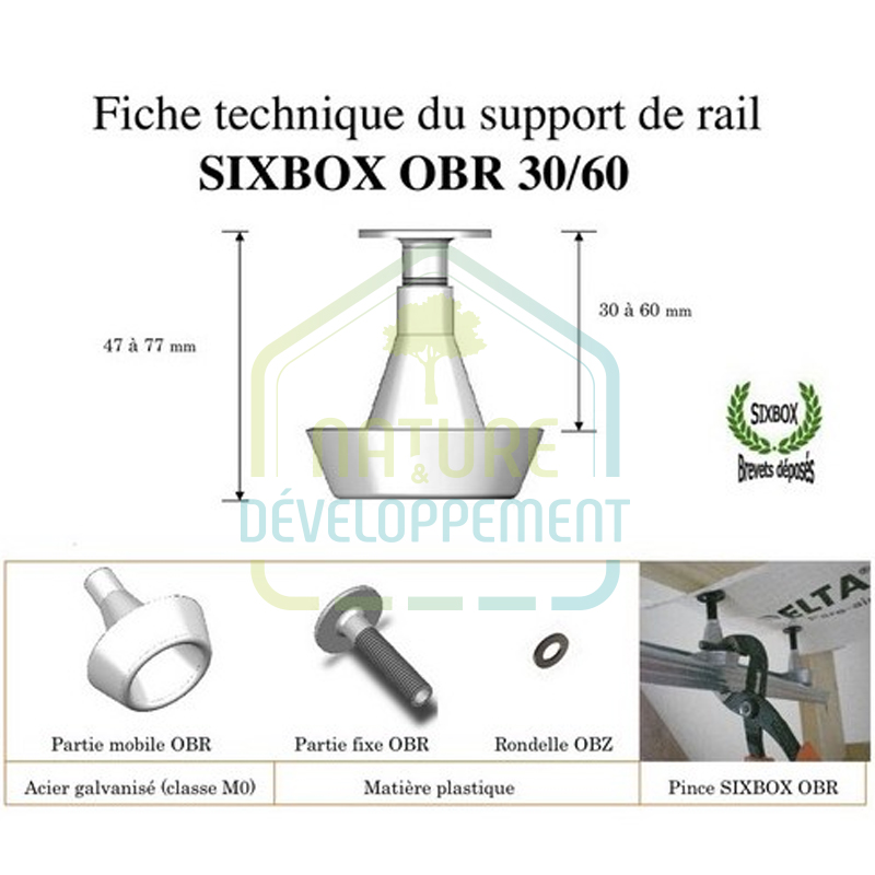 Support de rail réglable tête en acier galvanisé M0 OBR 30/60 SIXBOX